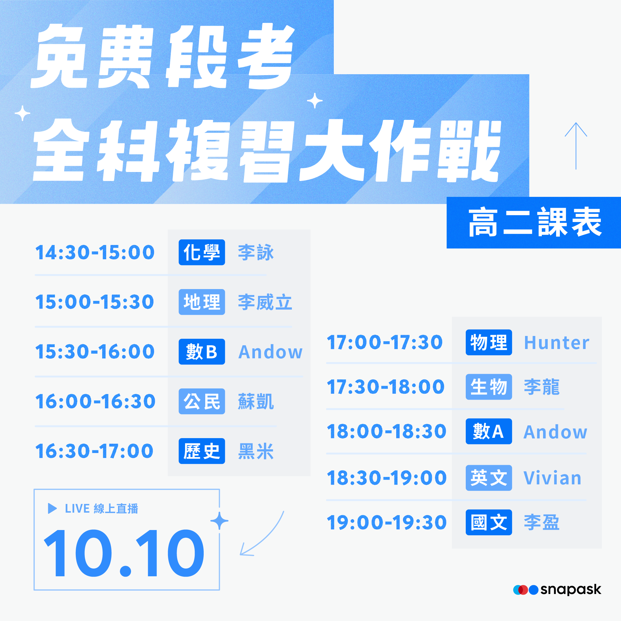 🔥「考前必看!段考全科複習大作戰」免費線上直播來囉!🔥