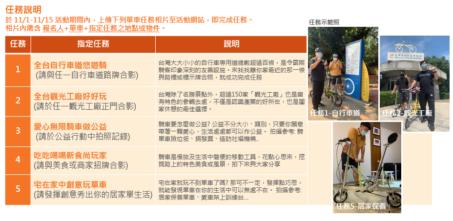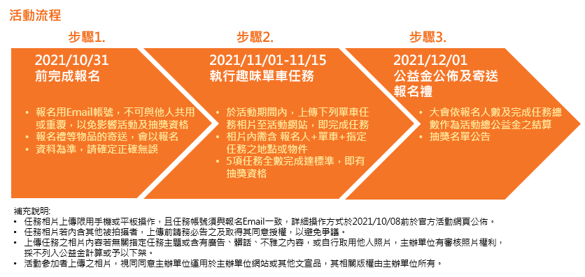 - 任務完成抽獎結果將於 2021/12/01 公告於報名網頁站及太平洋自行車博物館FB粉絲團。