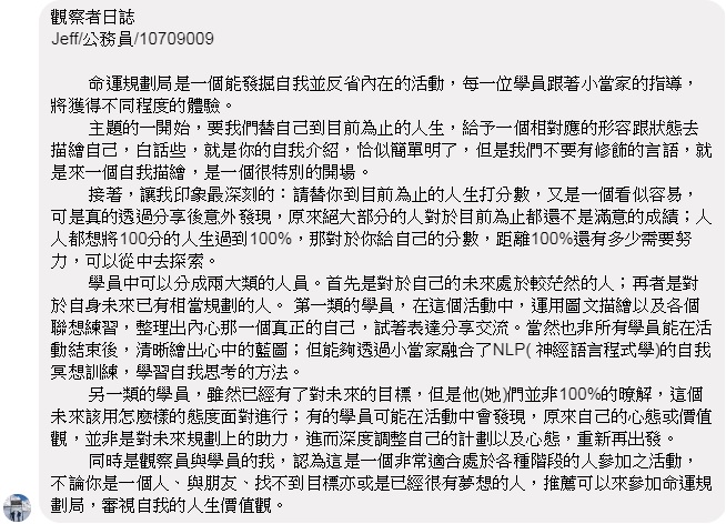 命運規劃局,是為了幫助大家:釐清自己內心的想法,找到生命的熱情和渴望,並且激發改變人生和重寫命運前的動力。