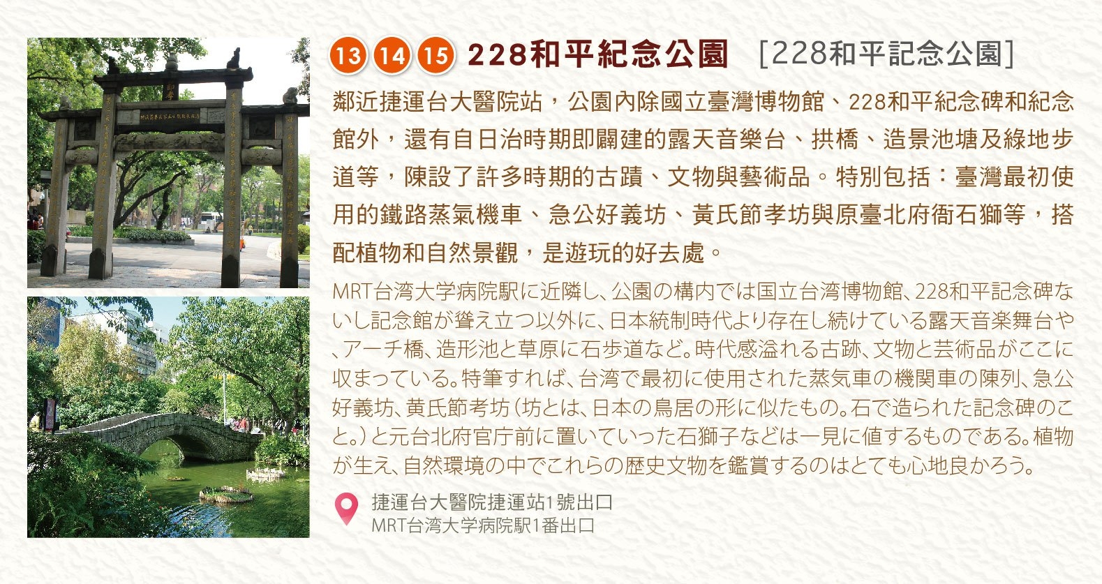 - 導覽過程需要走路移動,請穿著適合走路的鞋子,並請適時補充水分。如遇天候不佳,請自備雨具。