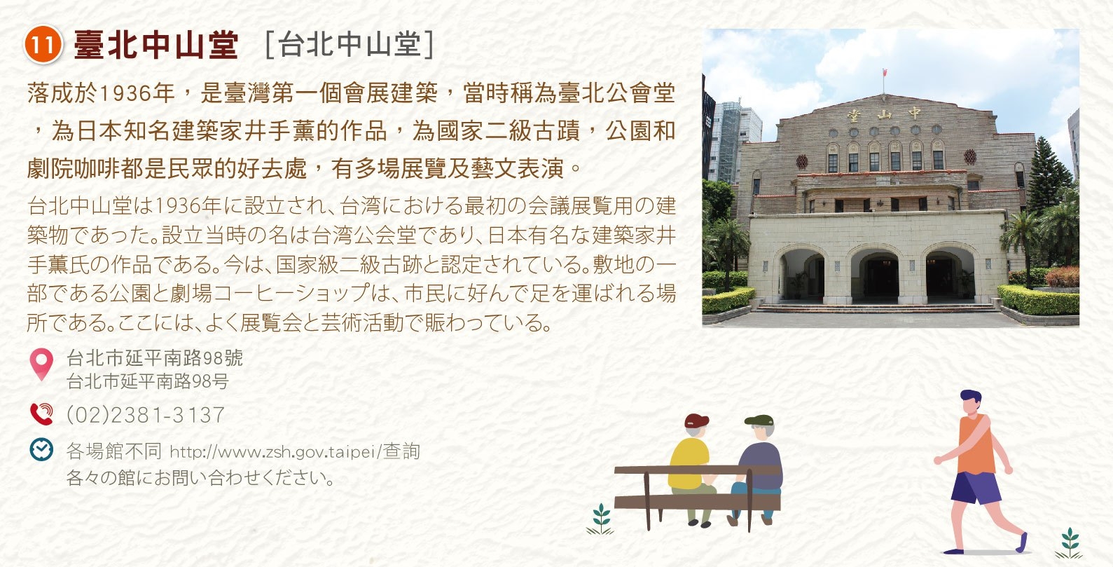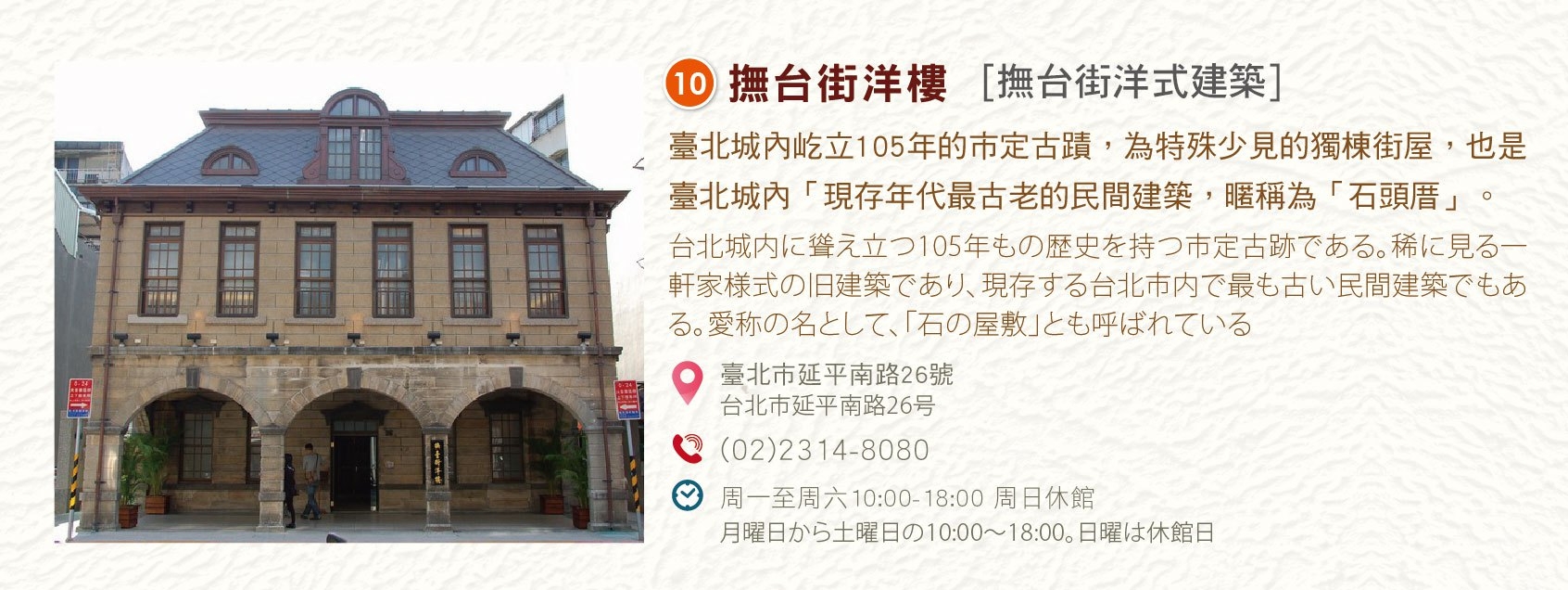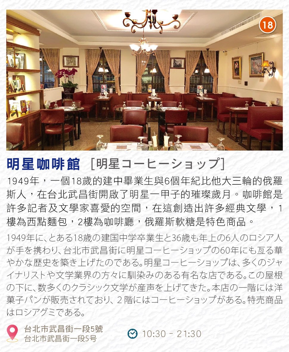 導覽路線以重慶南路一段為主,橫向交叉巷弄為輔,用故事帶領學員實際踏訪重南書街的歷史建物,呈現地方人文、生態與環境特色,感受商業活動與環境之間的共好關係。