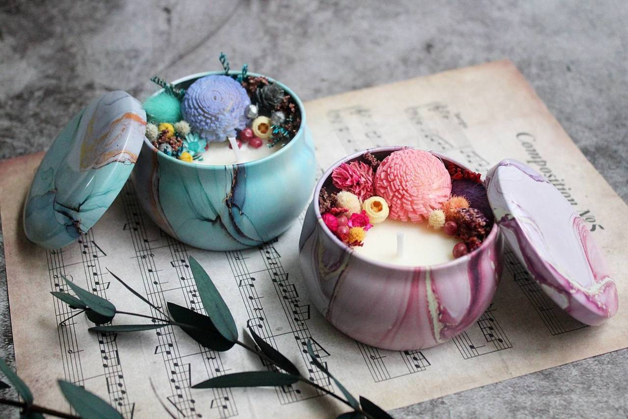 我們會隨機出各式各樣的鐵罐,成品製作出來很漂亮,可以成為手作禮物送給別人別出心裁唷!如果不燃燒的話,可以噴自己喜愛的香水,或是滴自己愛的精油在主花索拉花上面,可以延長擴香效果!