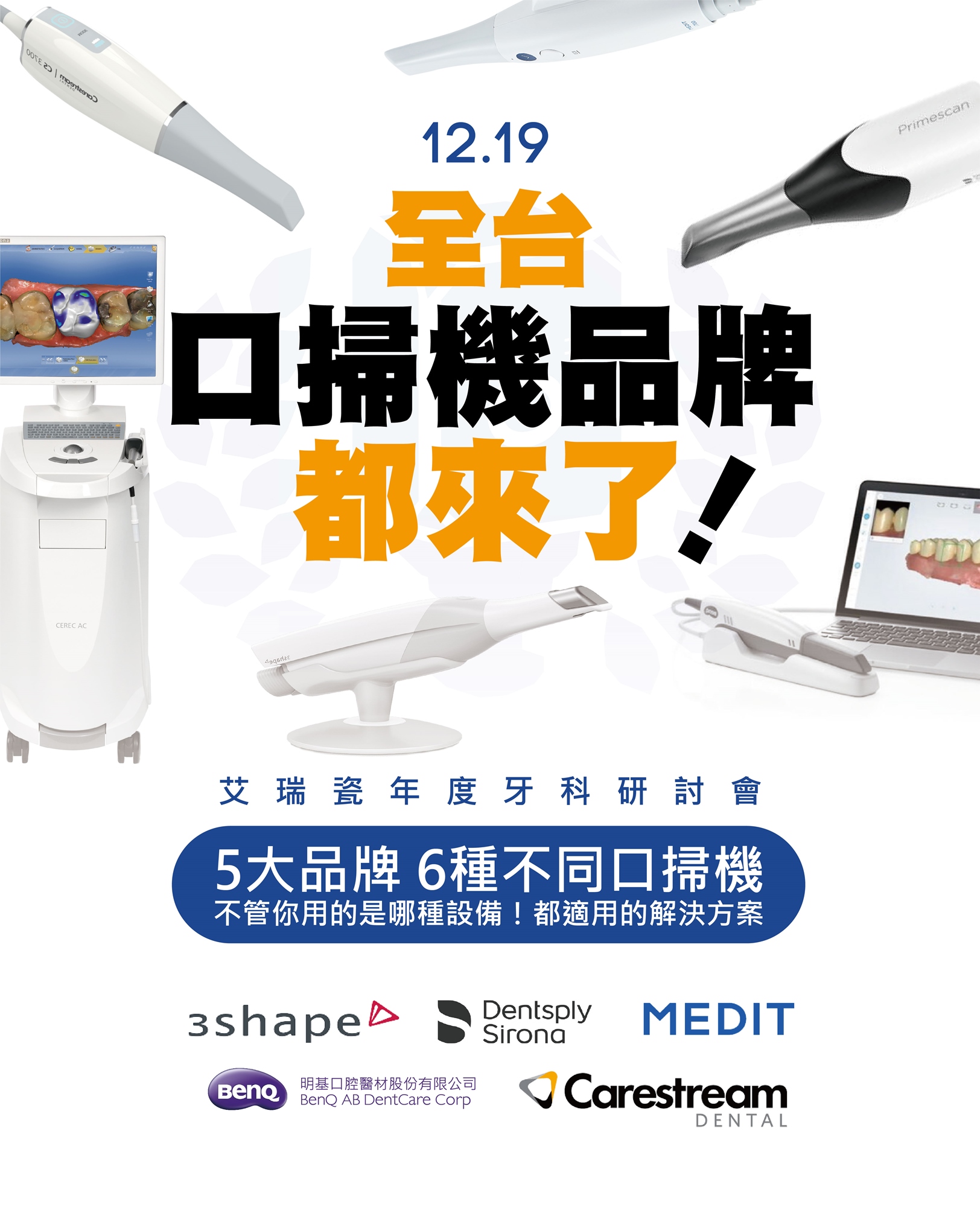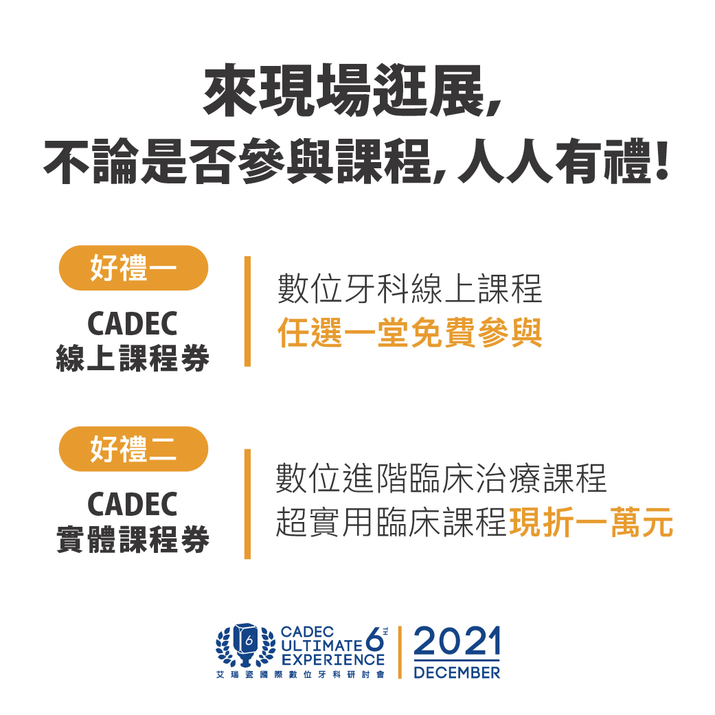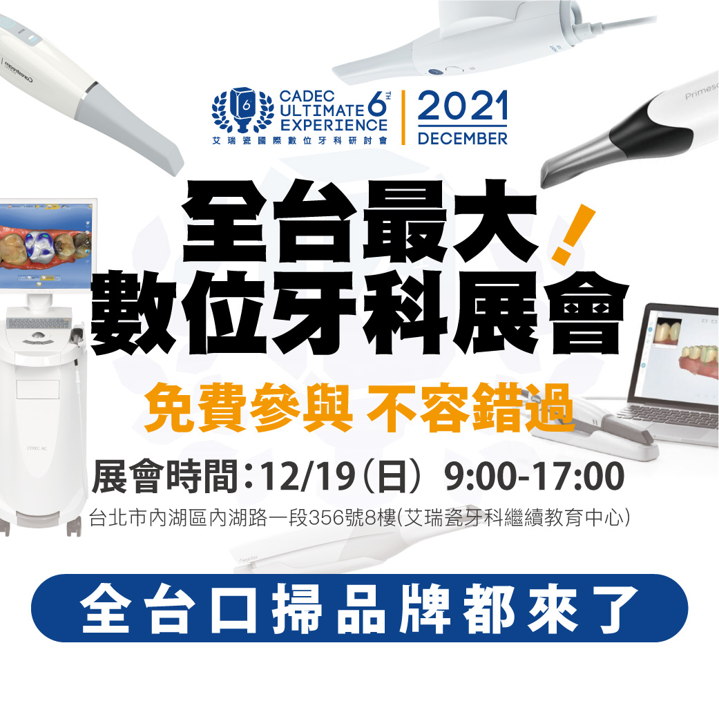 不同廠牌的口掃機,在臨床上面對不同治療時應該注意到的秘訣都不相同,今年CADEC #不限廠牌 #無論系統,三場 Live Demo 讓你掌握不同品牌口掃機的掃描技巧與品質驗證。