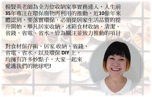| 10月31日 | 13:00 | 14:30 | 環保教育講座(第三場) 資源再利用.快樂作環保 楊賢英 |