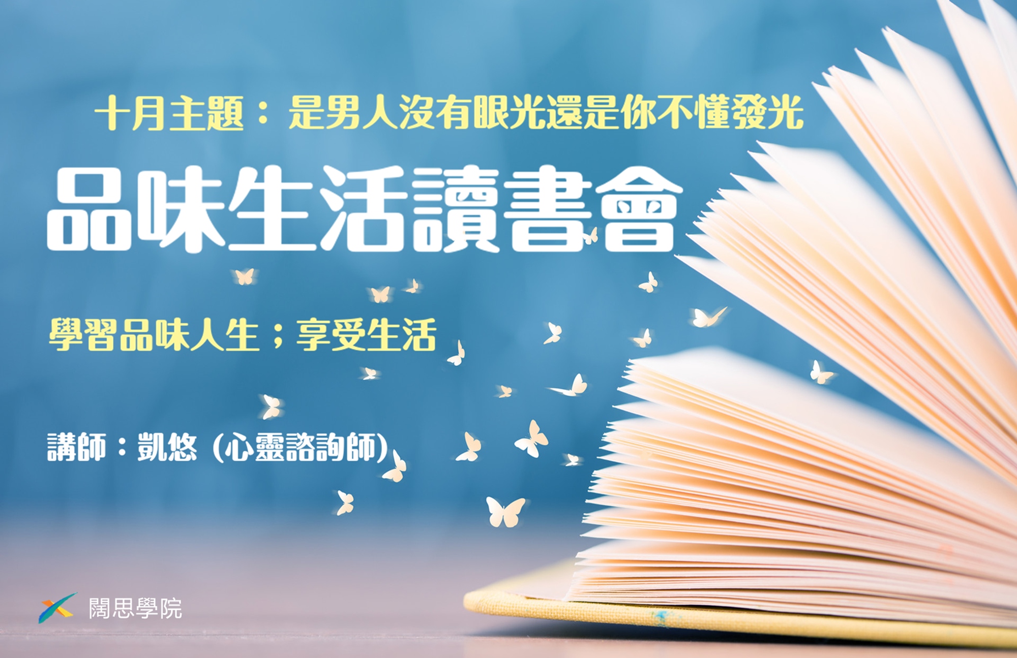特別邀請《凱悠心靈工作坊》凱悠心靈諮詢師,每次選定不同主題,從心靈成長、兩性關係、家庭議題、婚姻相處、情緒壓力...等不同領域。帶大家一起學習過好生活!品味人生!