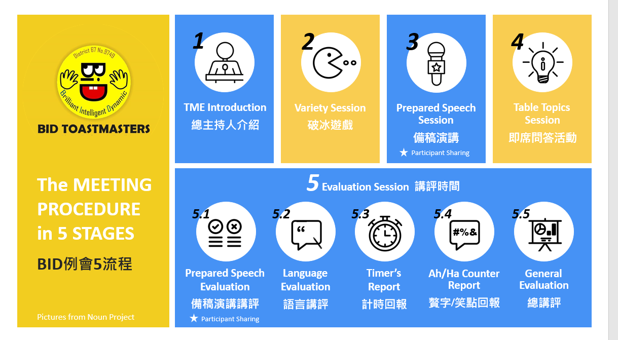 本活動使用ZOOM,會議ID:2616631118 密碼:893764。如有問題,歡迎詢問 FB (BID Toastmasters) 小編