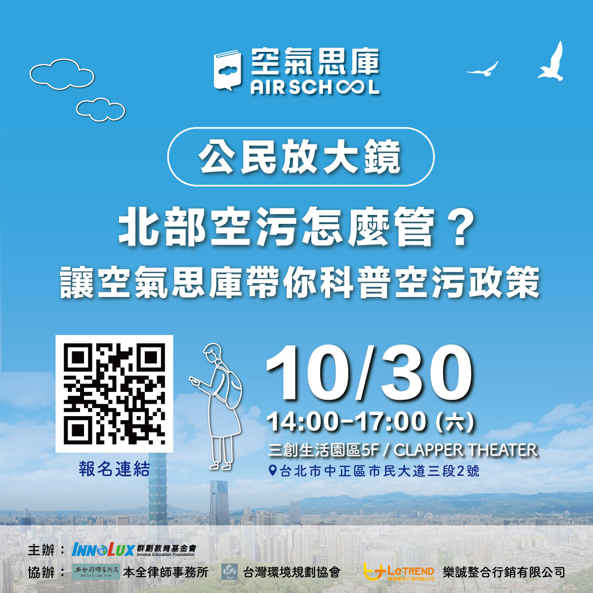 本場座談會將邀請產官學界專家用淺顯易懂的方式,讓法條不再只是文謅謅的天方夜譚,帶領民眾從各個面向深入了解北部目前的空污問題。