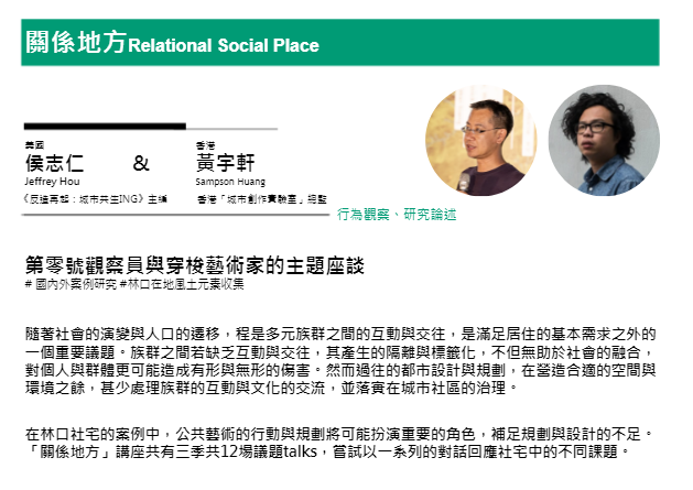 【社宅非孤島:藝術行動中的都市新共域】系列講座