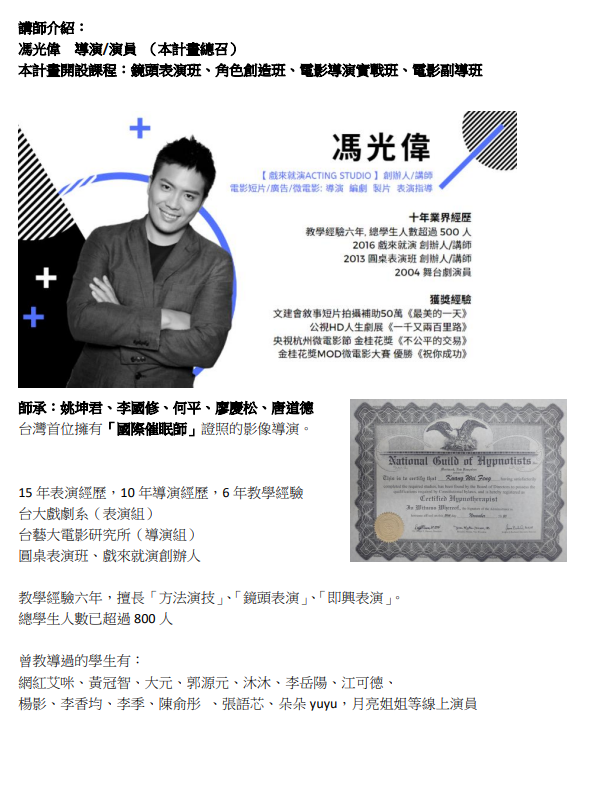2. 想學習表演、或電影創作技術者(零經驗可)