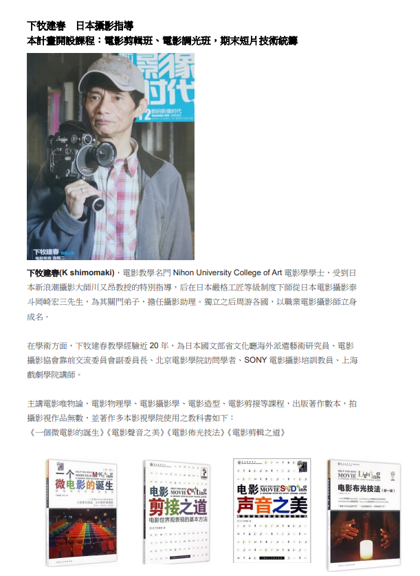 📍專科專任導師制度,老師都是一線影視從業人員,甚至有拿過金馬獎、金穗獎、臺北電影節、香港電影節等獎項。