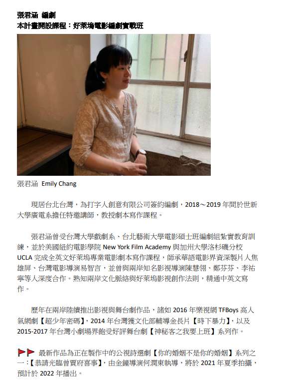 👉電影編劇實戰班(張君涵)