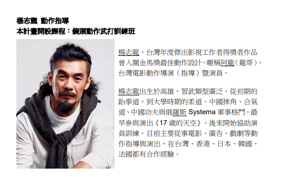 👉動作武打演員訓練班(楊志龍)