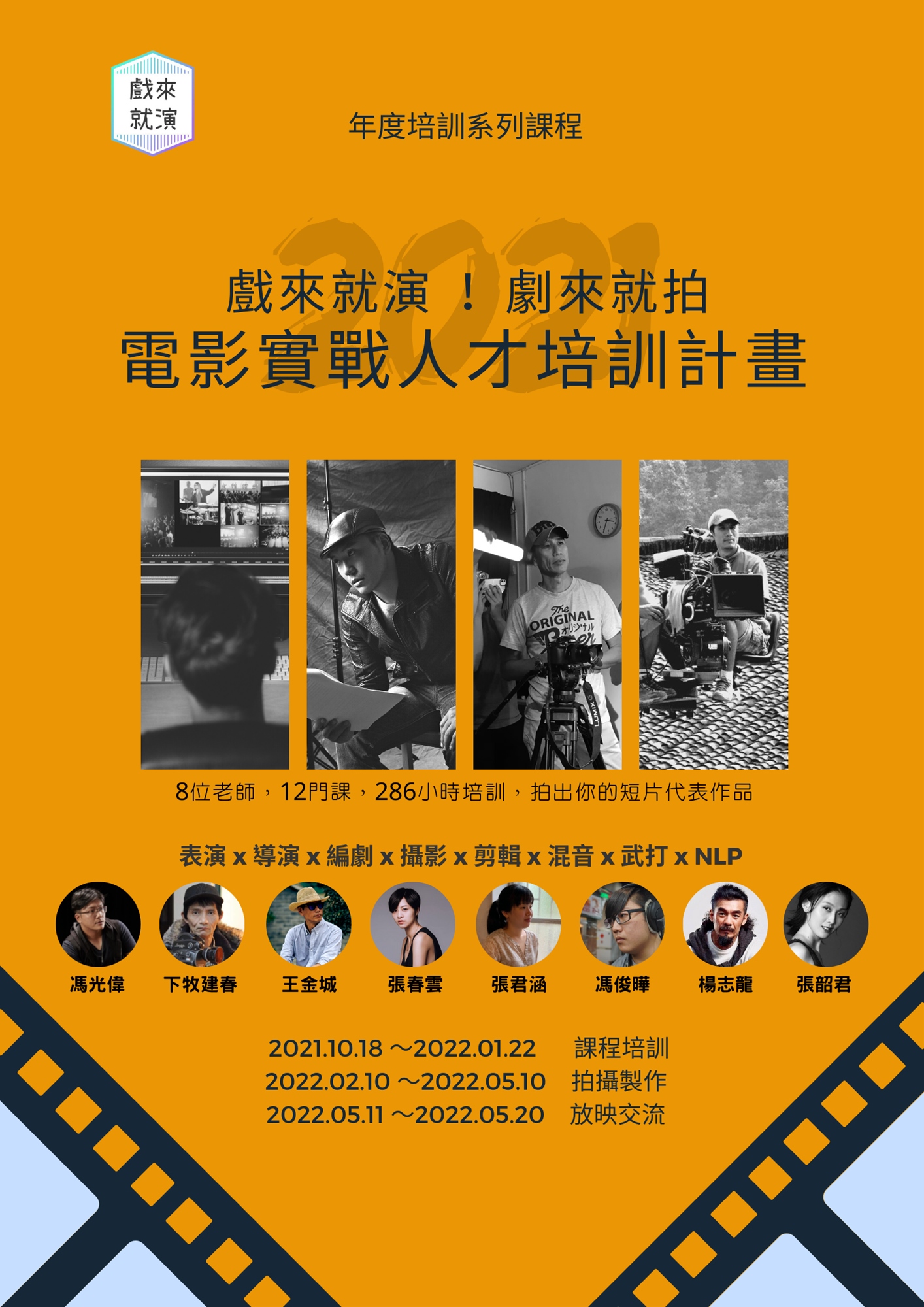 8位老師、12門課、286小時培訓,拍出你的短片代表作品。