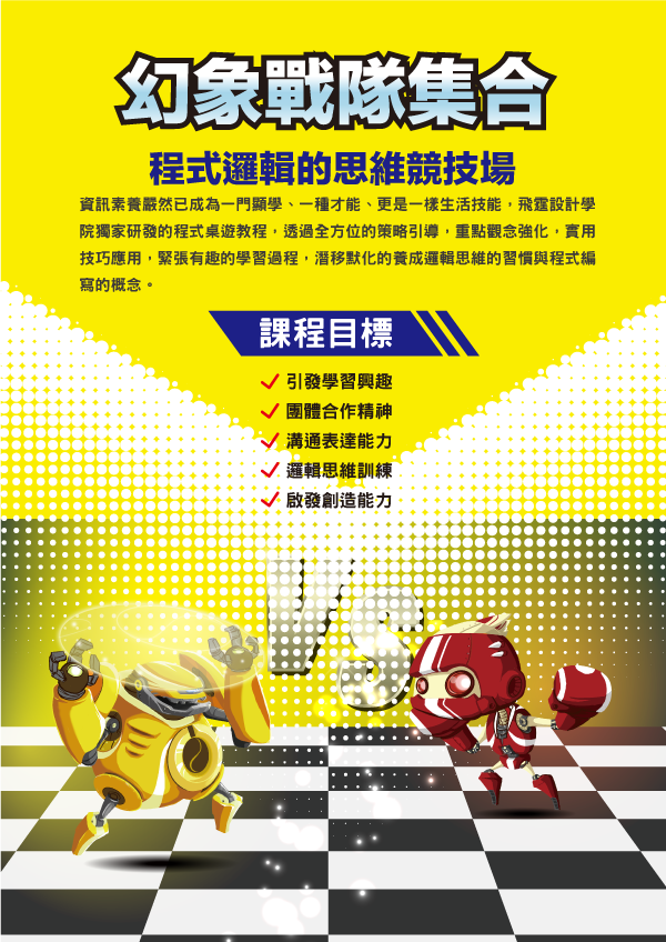 透過遊戲解說,融入程式編寫原則與技巧,讓孩子實際操作演練,學習編程思維也訓練邏輯概念與運籌帷幄 的策略思考模式。