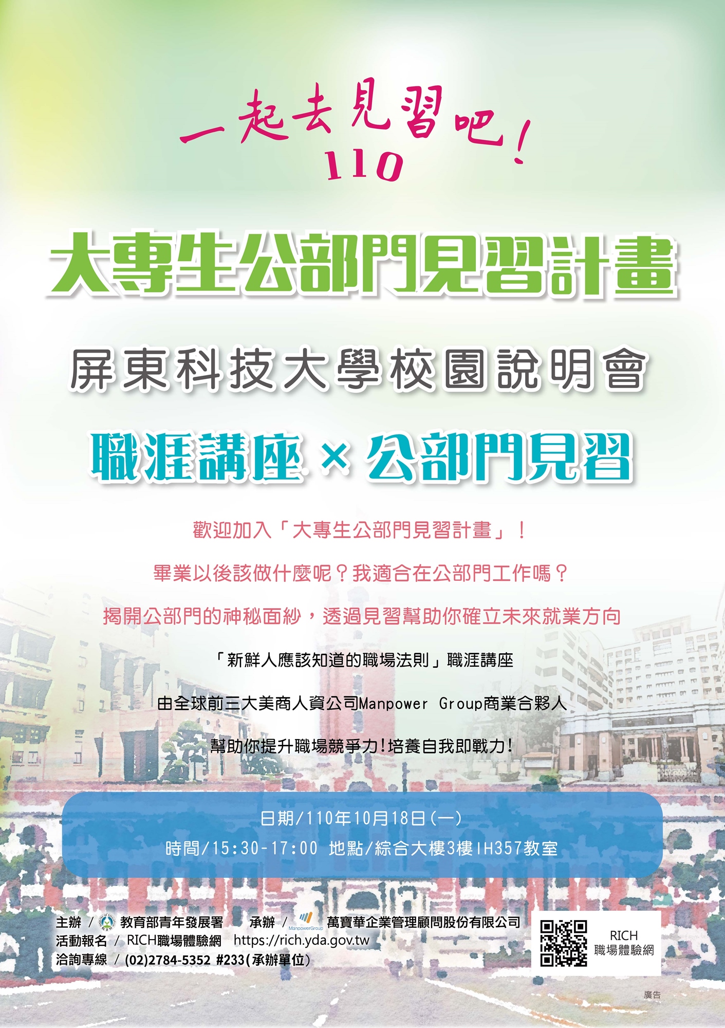 【110年公部門見習計畫】國立屏東科技大學校園說明會