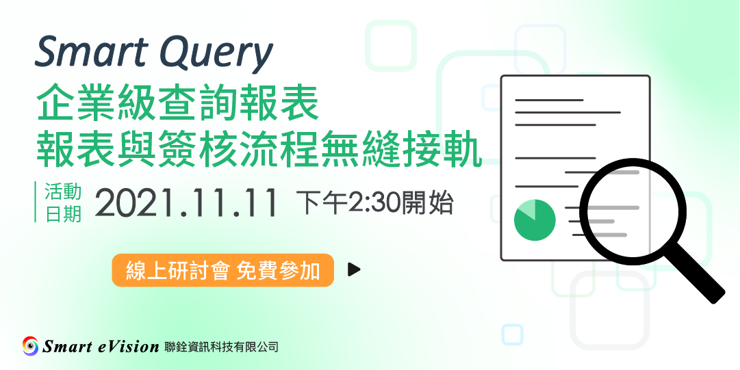 11月11日(四) 14:30~15:30 |「Smart Query」企業級查詢報表,報表與簽核流程無縫接軌