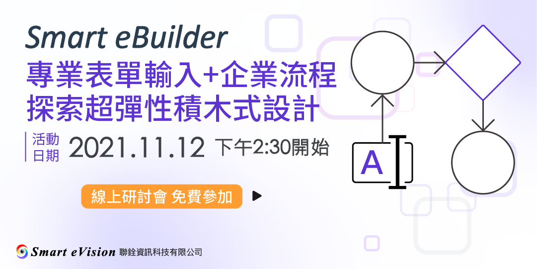11月12日(五) 14:30~15:30 |「Smart eBuilder」專業表單輸入+企業流程,探索超彈性積木式設計