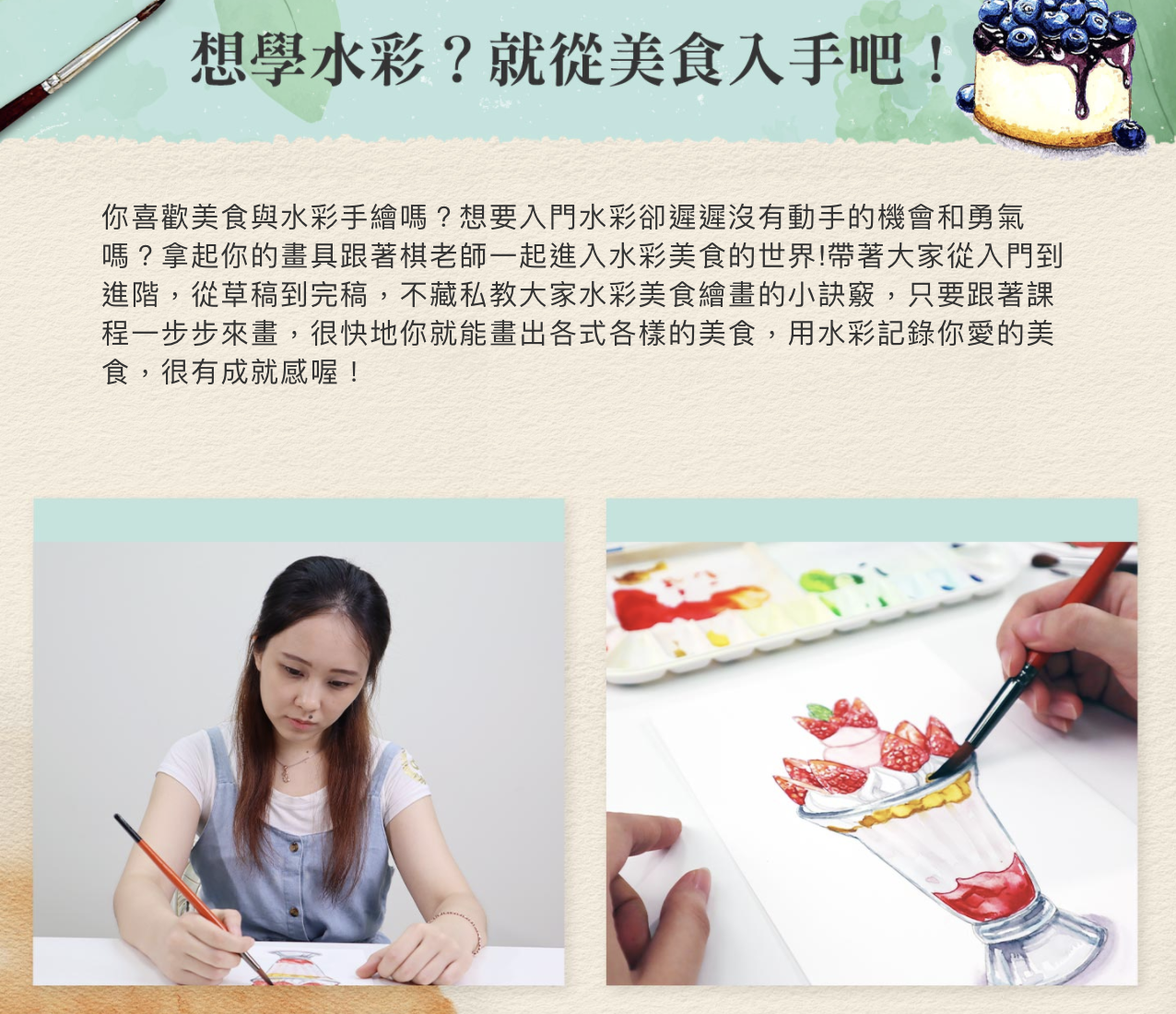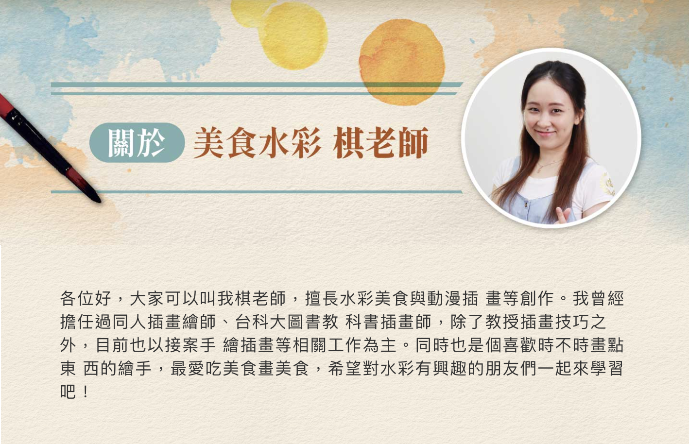 棋老師帶著大家從入門到進階,從草稿到完稿,不藏私教大家水彩美食繪畫的小訣竅。