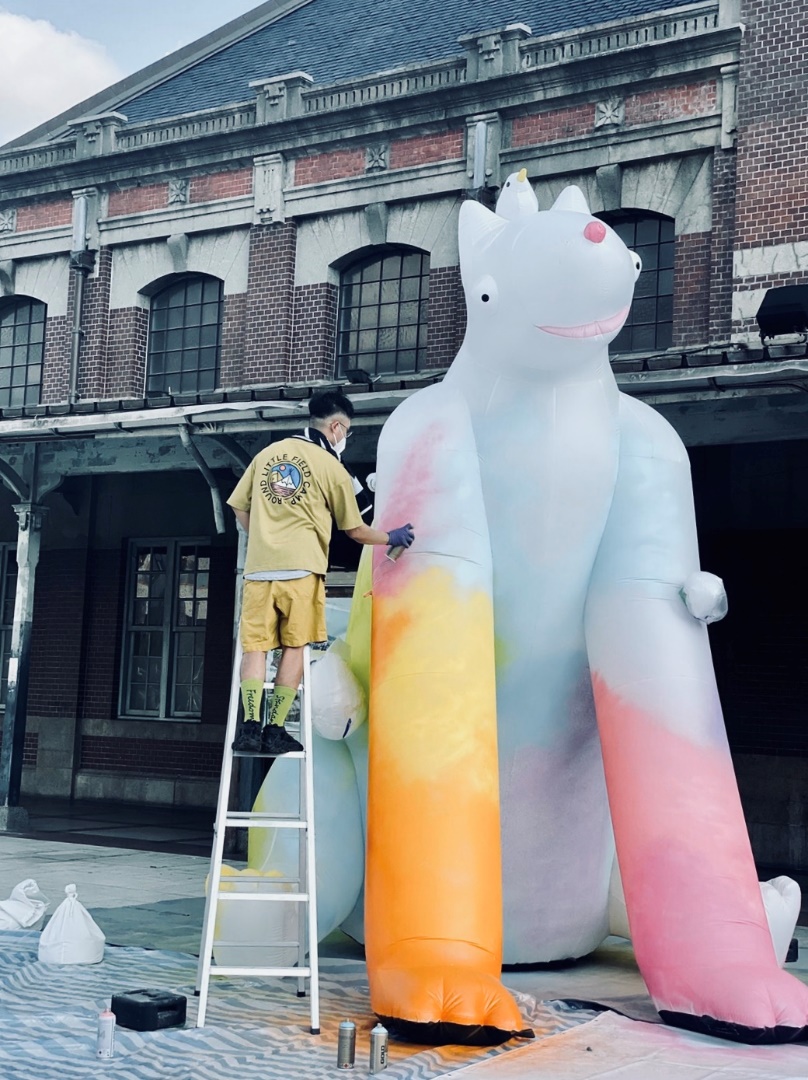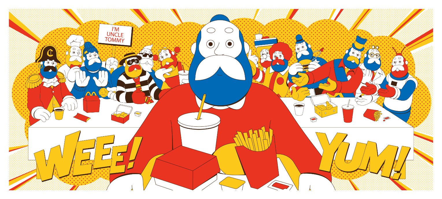 鬍子大叔運用獨特配色,紅、黃、藍、白進行創作,