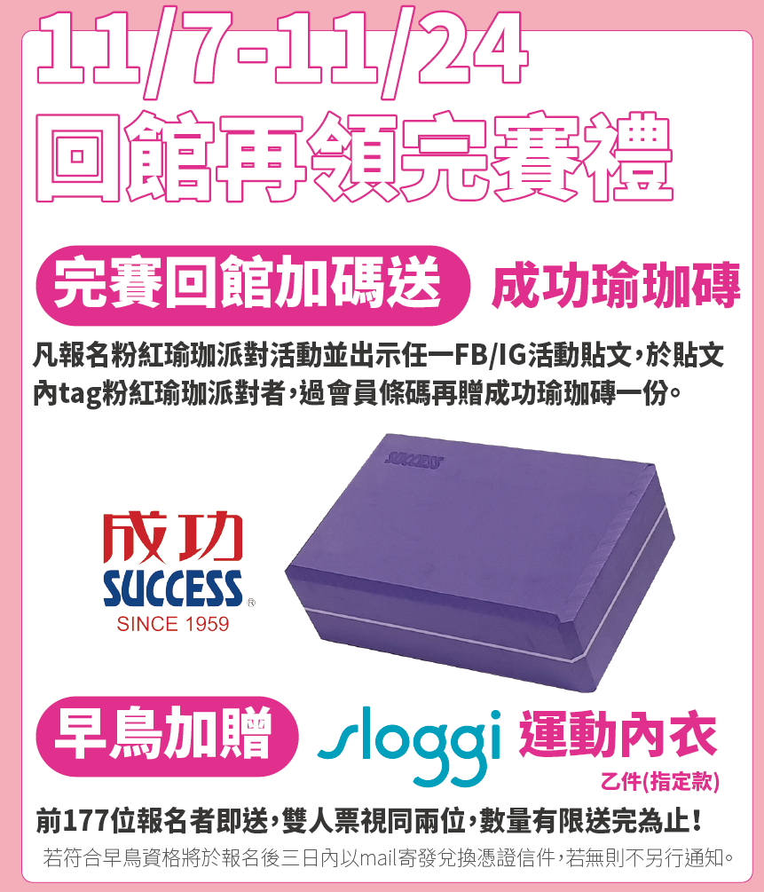 活動獨家聯名運動配件,報名就送粉紅瑜珈墊+粉彈彈力帶!
