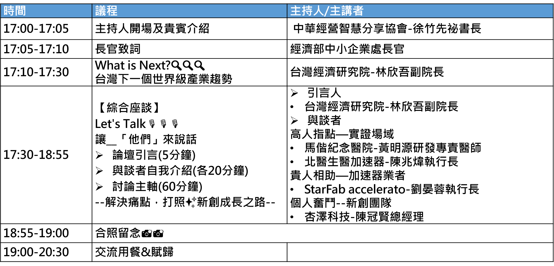 參與對象:邀請醫療產業相關之投資人、加速器、實證場域業者及曾獲投新創等