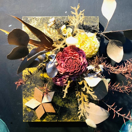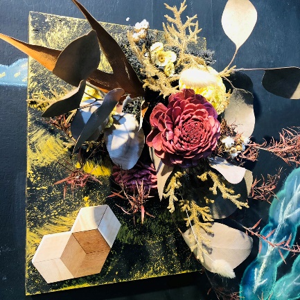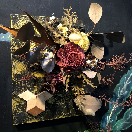 如上圖所示,正是木藝加花藝的立體無框畫,可作家中擺飾、亦可吊在牆上或是擺桌上點綴裝飾,為生活添增一番生活藝術氣息。