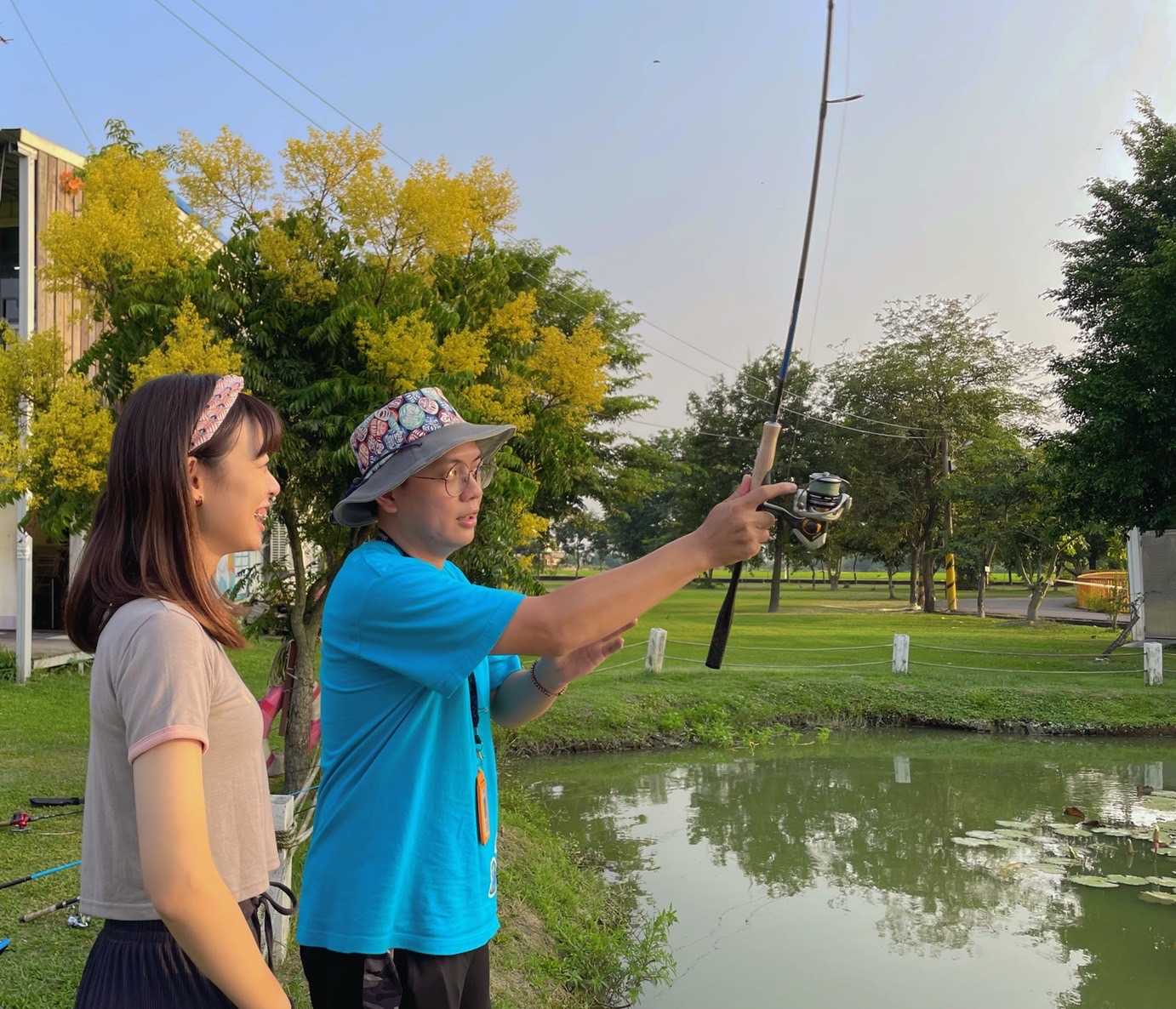 「戶外釣魚體驗」活動地點擁有一大片脆綠草皮,環境放鬆悠閒,適合好友、親子家庭踏青。