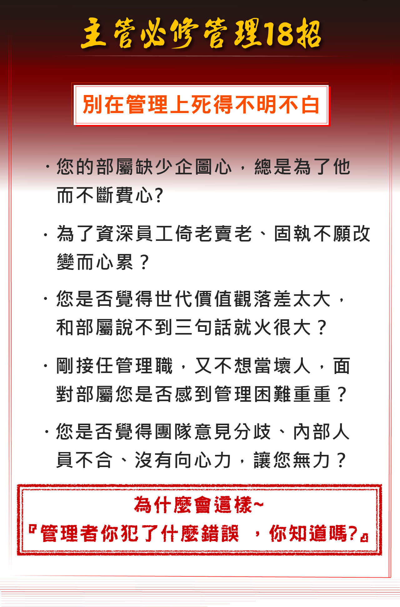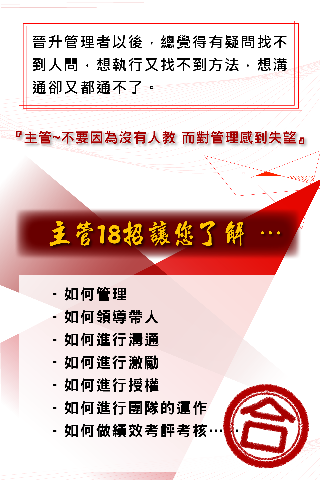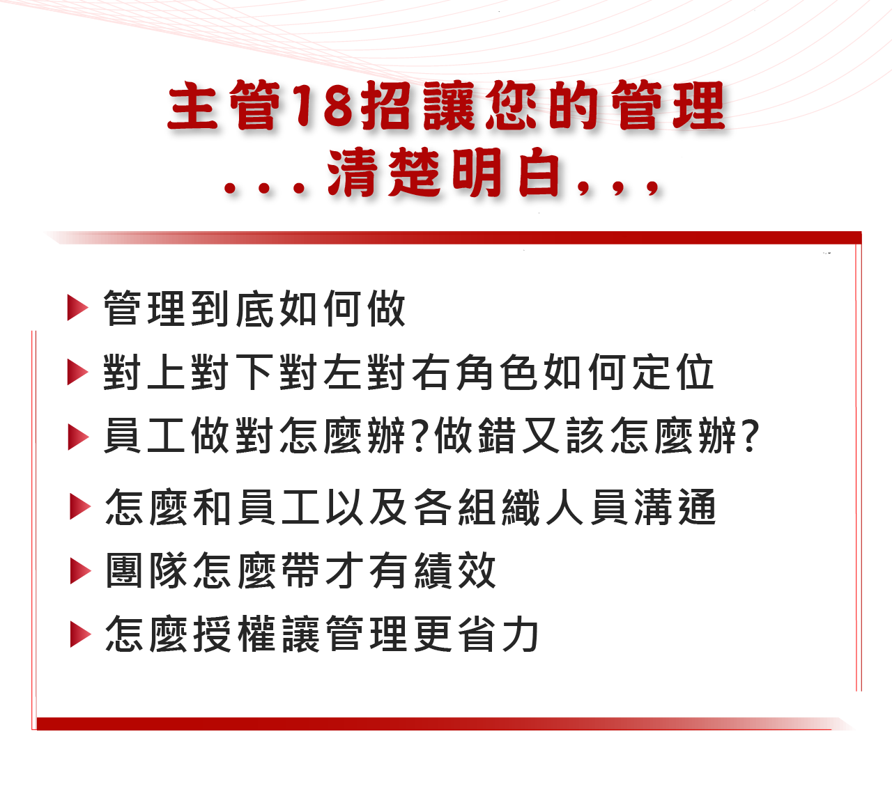 濤濤國際『主管必修管理十八招』~『四個小時,讓企業主管的管理能力更升一級』