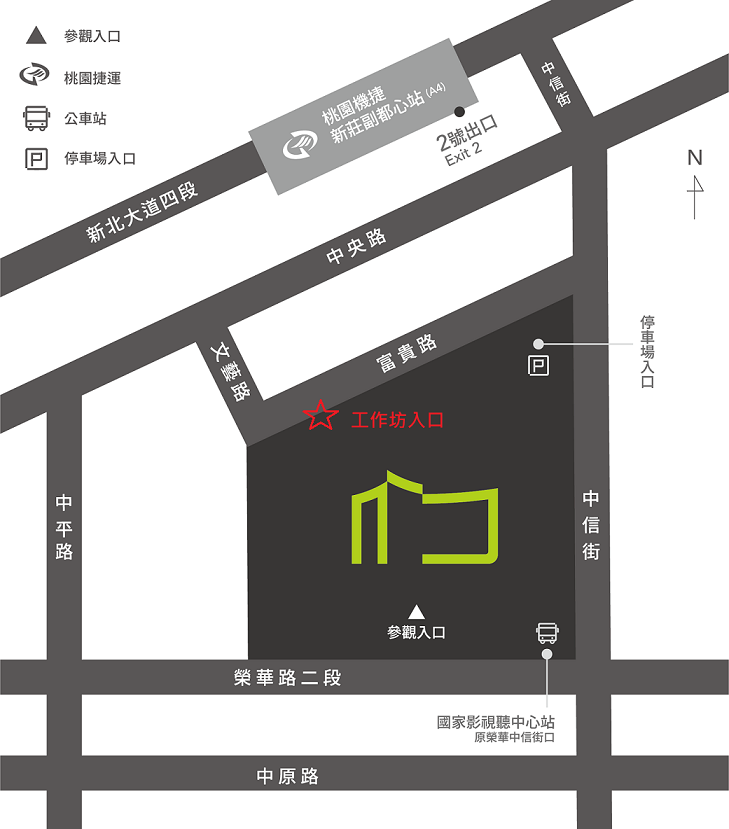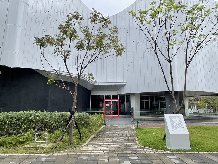 - 報到時間因尚未開館,請由戶外廣場水池旁的門口進入,如下圖所示