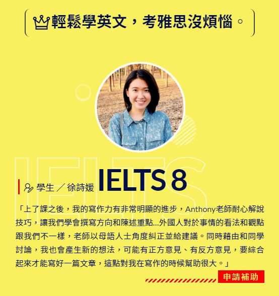 【補助2萬元】雅思培訓補助計劃,額滿為止!