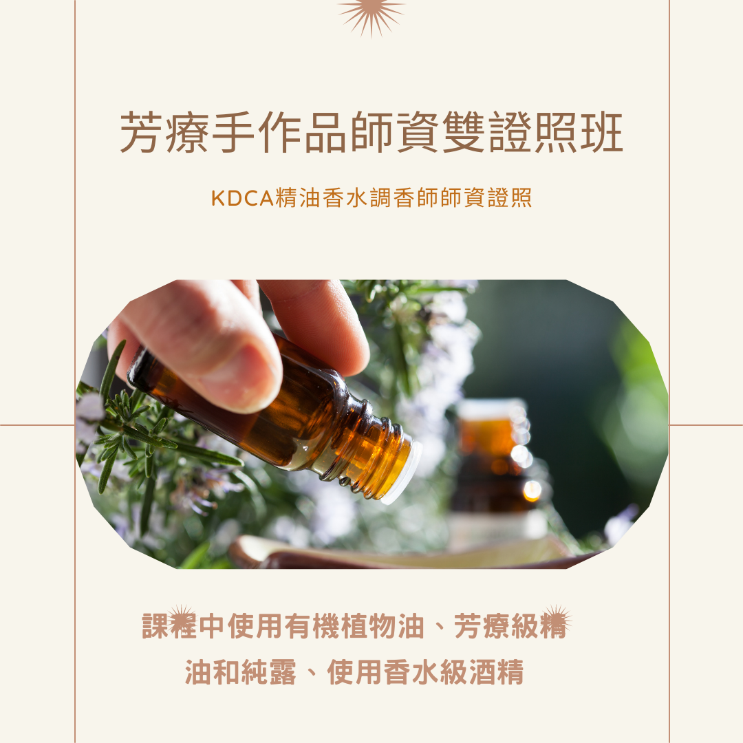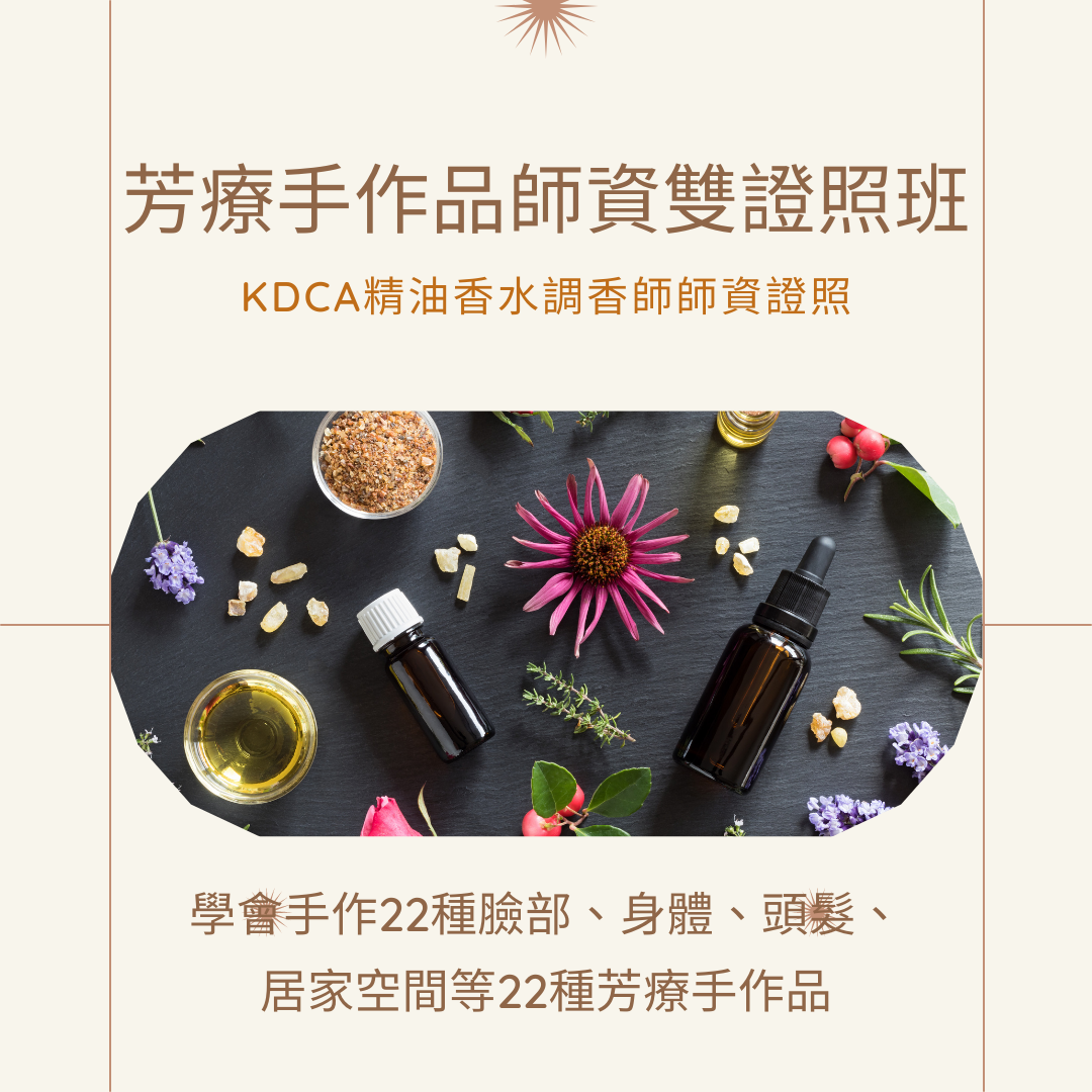 三天內學會臉部、身體、頭髮、肌肉骨骼等總共20種手作保養品,徹底了解保養品或各種手作品的原理與方法,再加上目前最熱門的韓國精油香水調香證照,讓杏陽老師,一路伴妳在芳香手作的路上吧!!