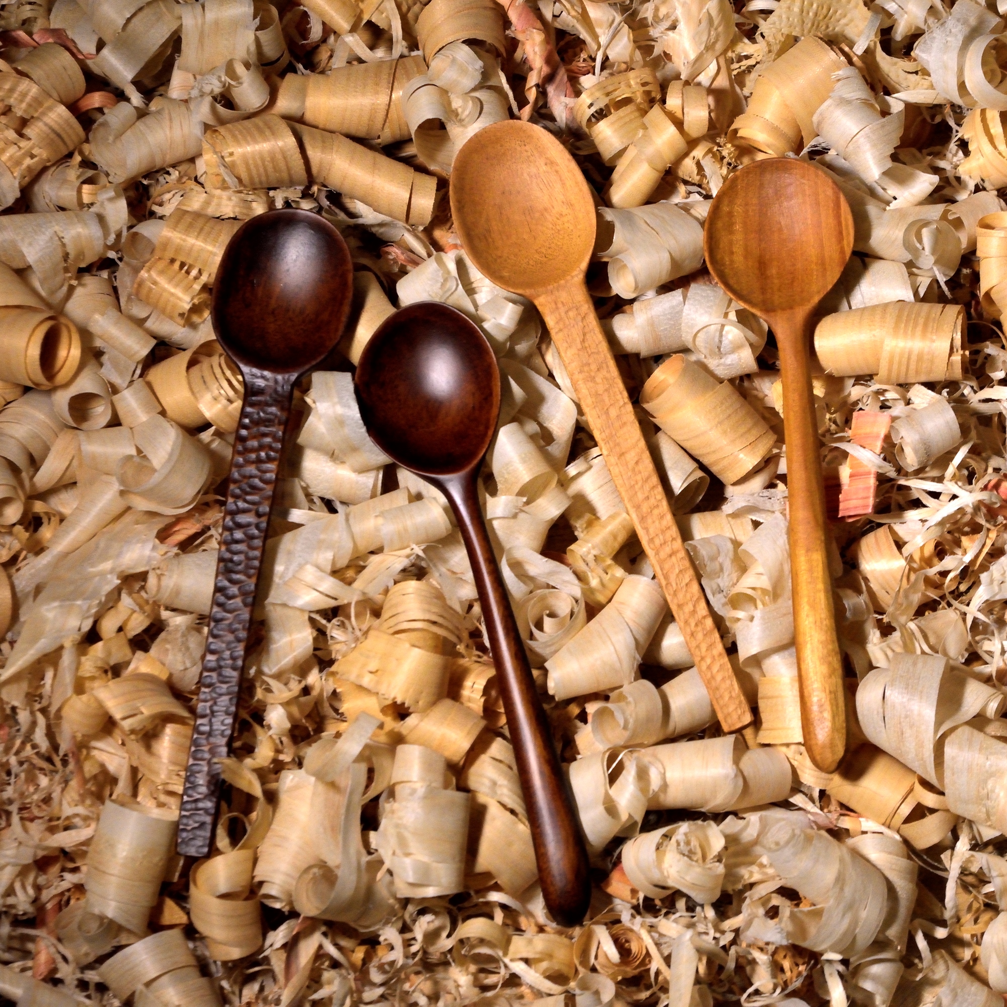 單報本堂課程完成之作品範例為右邊無上漆原木色的款式,左邊深色款為完成漆塗的木湯匙範例。