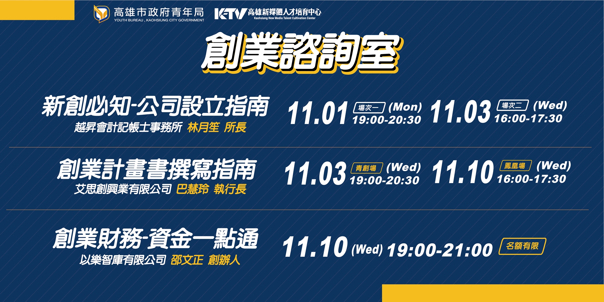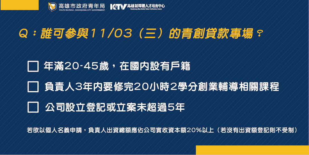 青年創業貸款|專場:11/03(三)19:00-20:30