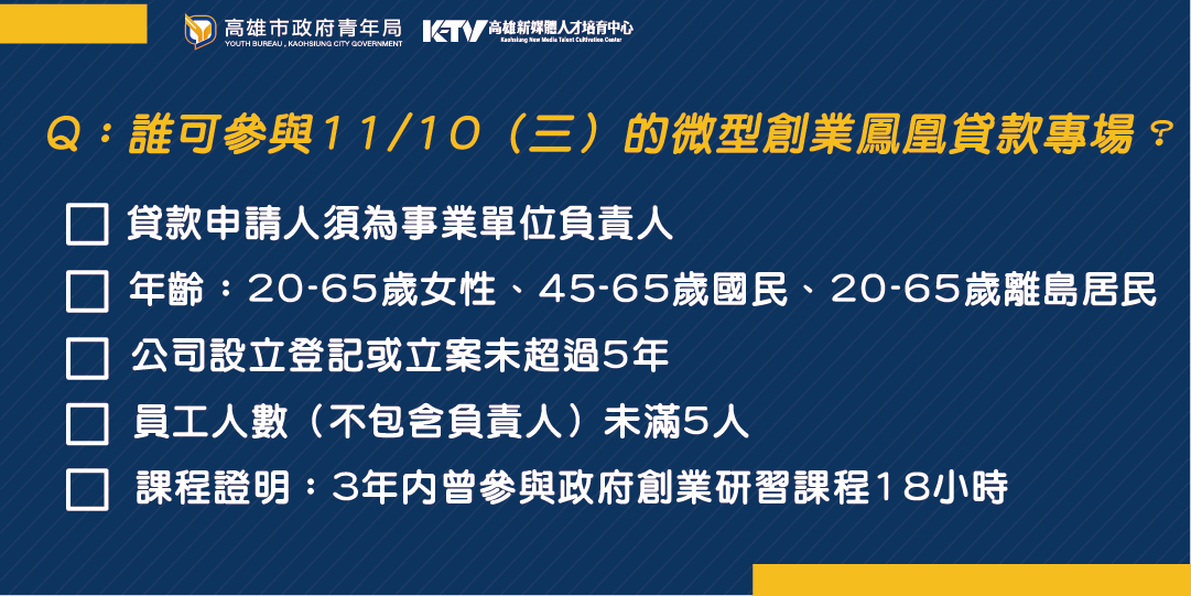 微型創業鳳凰貸款|專場:11/10(四)16:00-17:30