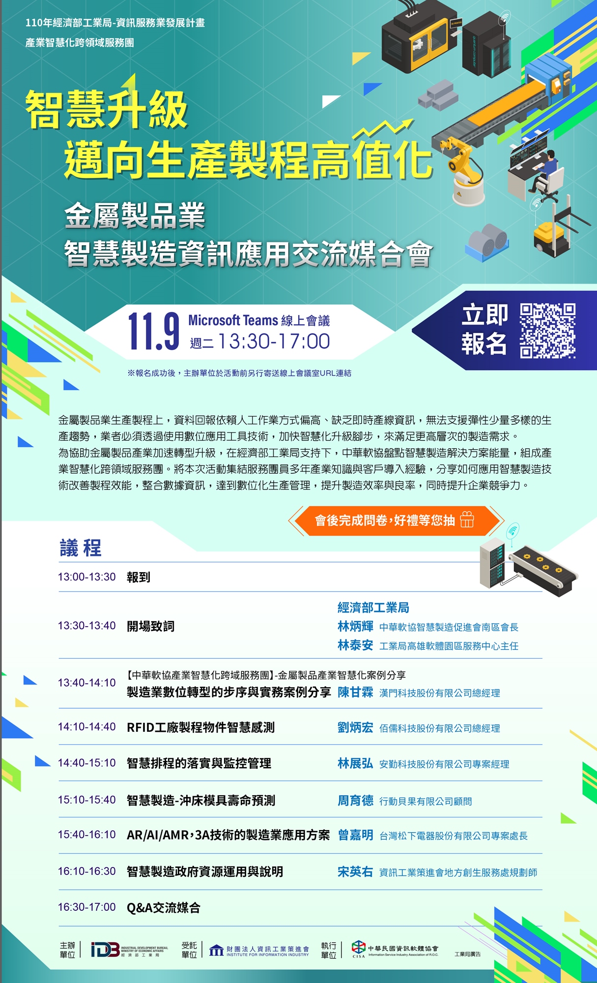 👨活動對象: 金屬製品業、傳統產業與欲做數位轉型規劃之製造業者