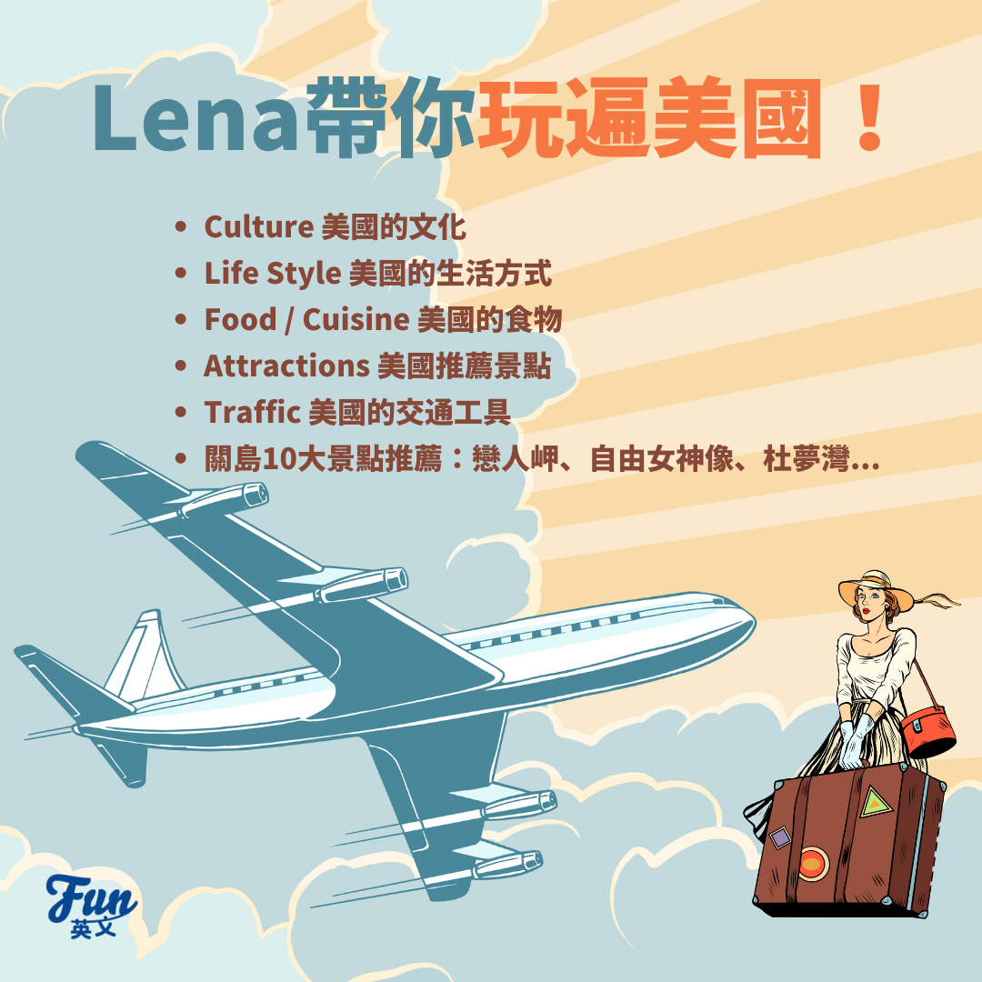 10/26(二)舉辦旅遊英文線上講座,邀請Lena老師分享「美國旅遊景點」及「實用旅遊英文」!
