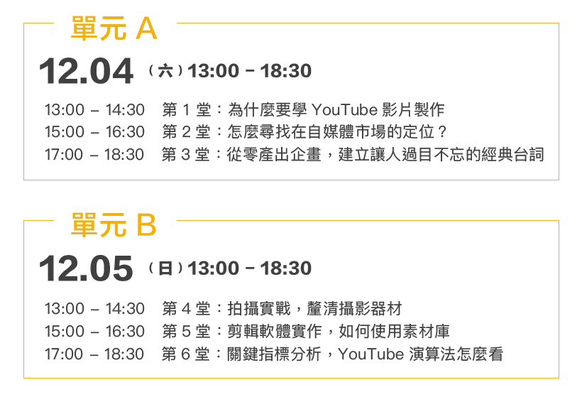 🎥 參加方式:免費參加,課程採單元A、B分開報名。