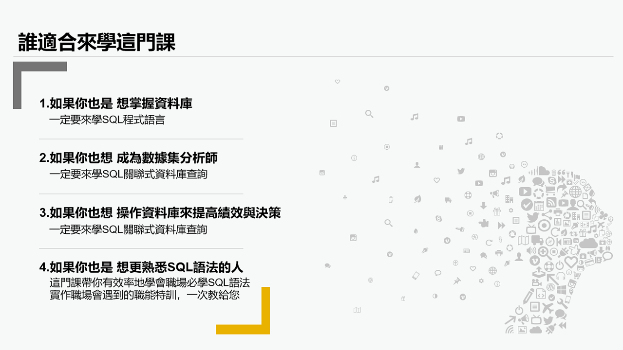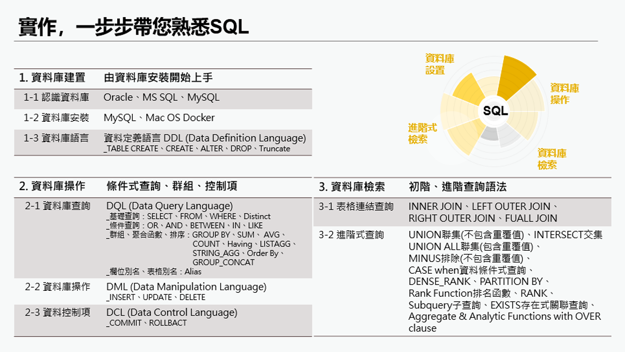 ◆ 立即報名免費試聽: 職能力推播 SQL程式語言