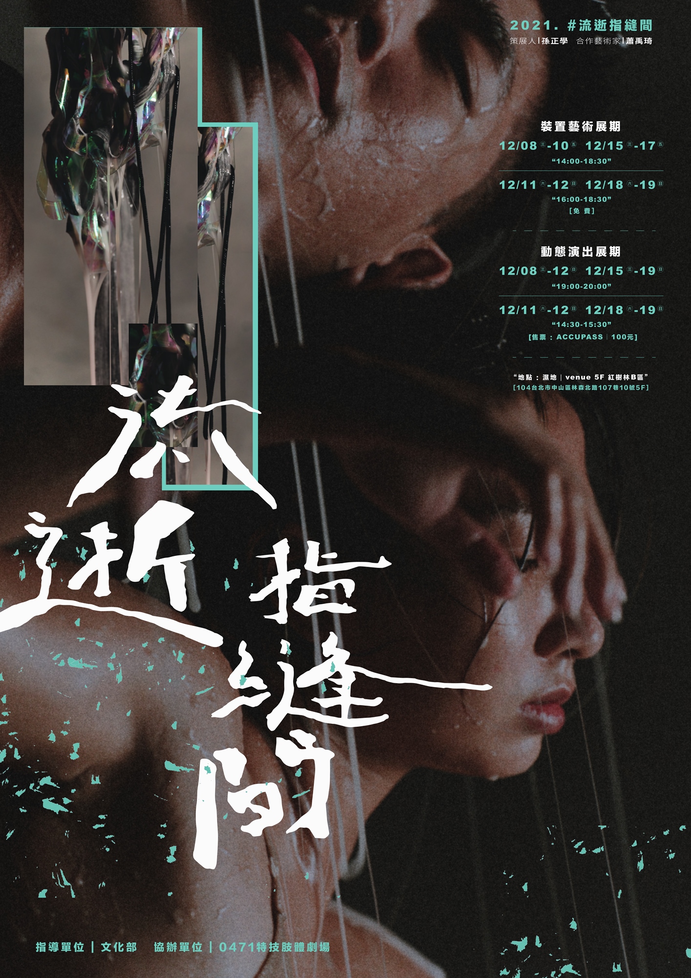 0471為臺灣少數專攻特技肢體劇場團隊,2021年新作《流逝指縫間》首次與視覺藝術家蕭禹琦共同創作,讓演出空間不再只是曇花一現的虛構環境,而是能夠讓觀眾身歷其境的展場。