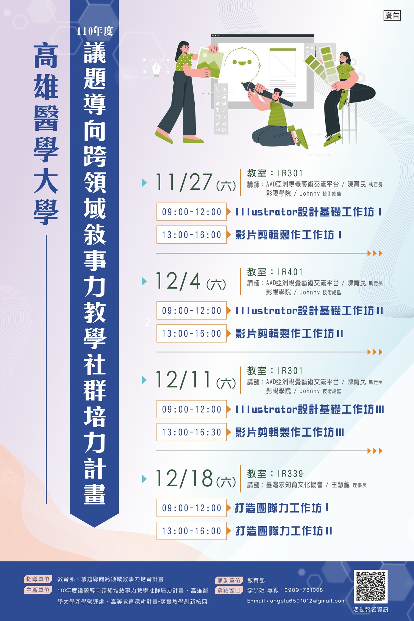 主辦單位:110年度議題導向跨領域敘事力教學社群培力計畫、高雄醫學大學產學營運處、高等教育深耕計畫-落實教學創新核四