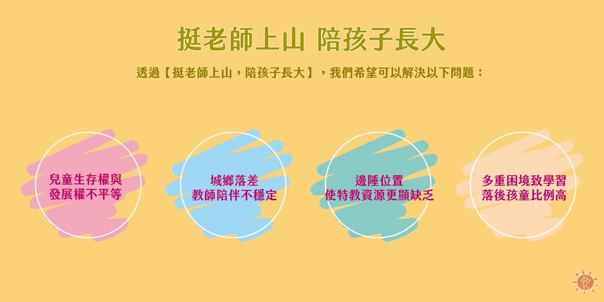 透過【挺老師上山,陪孩子長大】,我們希望可以解決以下問題:
