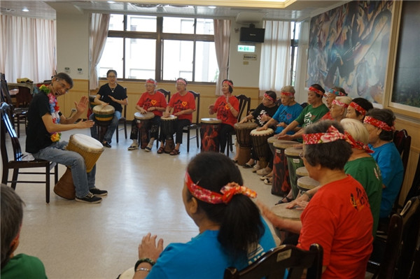 及老人院裏教授非洲鼓打擊有十幾年之久