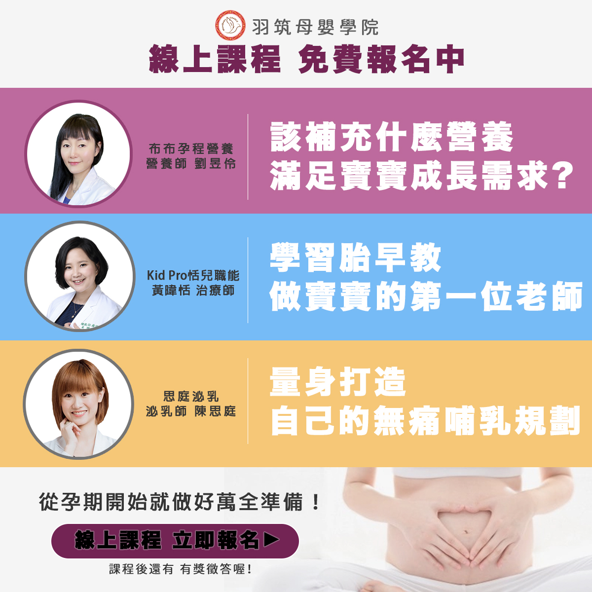 另還有胎教、哺乳相關主題場次,皆為免費參與,歡迎進入網站查看其他場次!