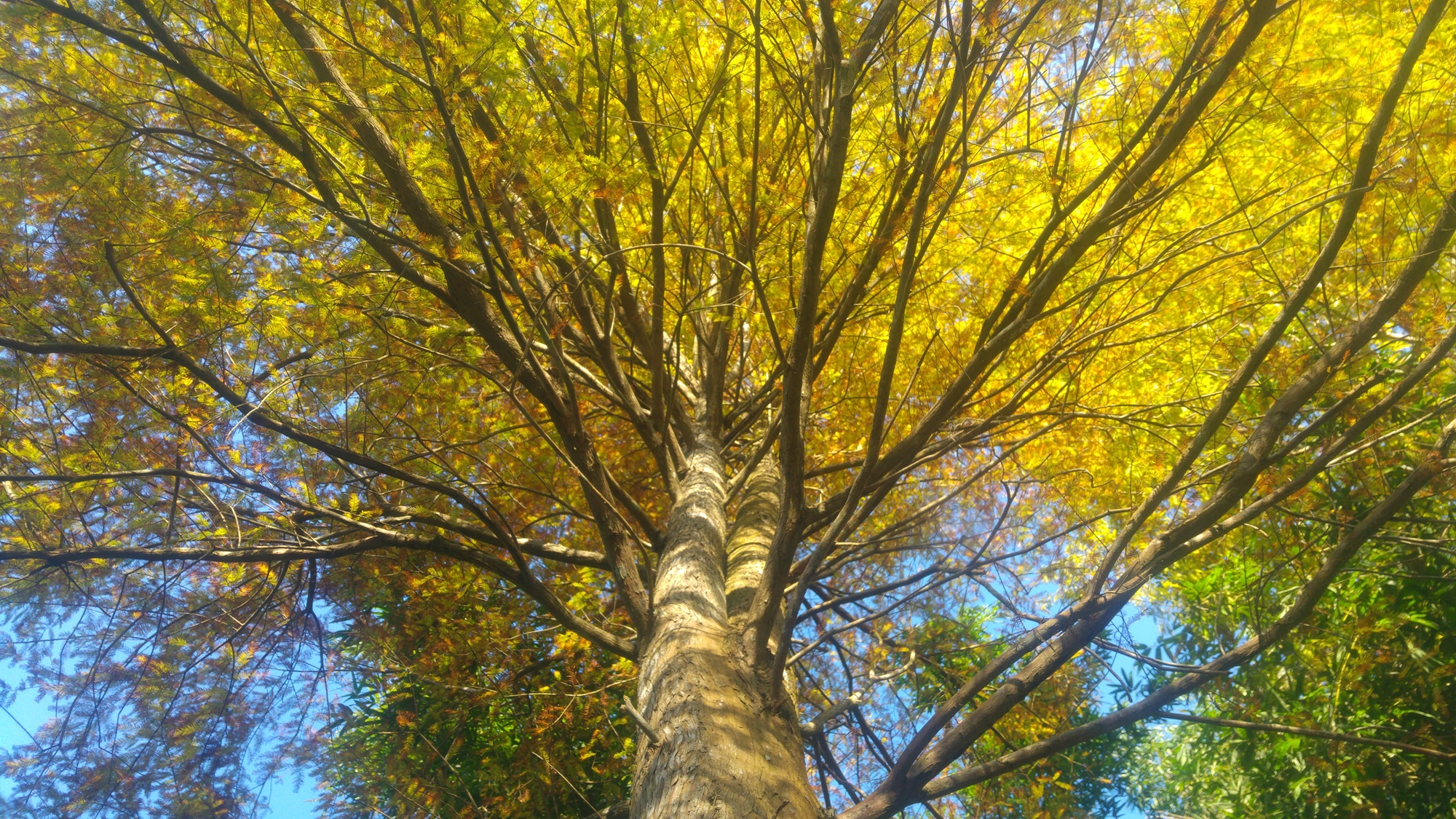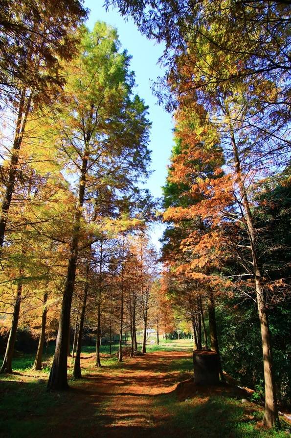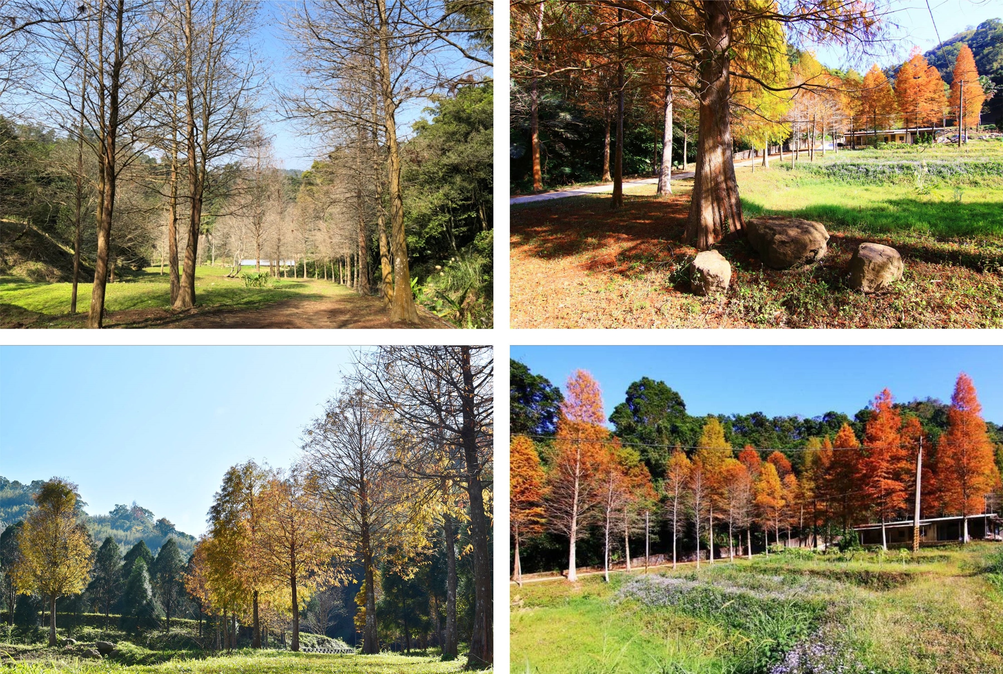 豐收的秋季天氣漸漸寒冷,大地農場有暖色的落羽松相伴