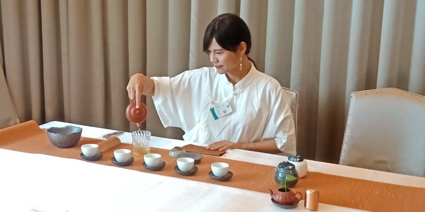 張馨予,南投協立茶莊第四代,慕茶迷的創辦人,憑藉靈敏的味蕾及經年品鑑好茶,