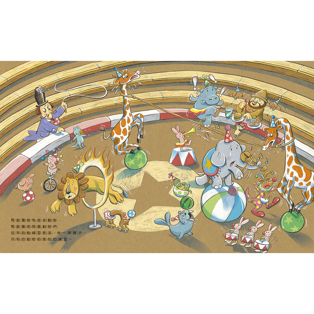 馬戲團動物被要求從早到晚練習表演,可是,Guji Guji不會走繩索、滾球、盪秋千、丟瓶子,沒有一樣表演做得好,氣得馬戲團團長將他關起來。