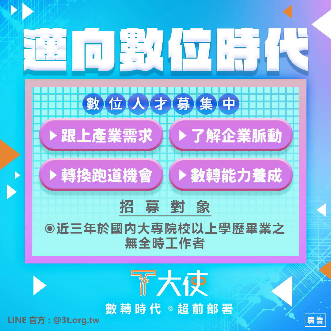 特別歡迎畢業近三年、尋職或轉職需求的夥伴們參與喔