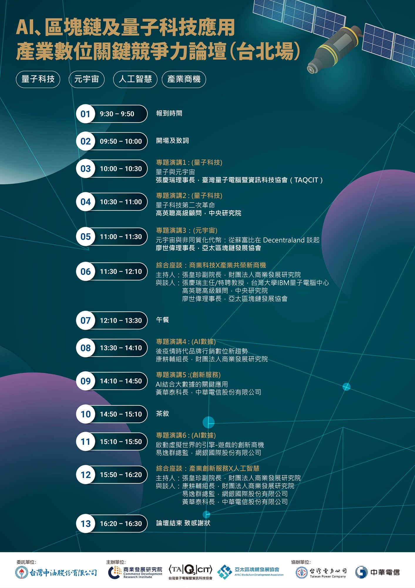 主辦單位 財團法人商業發展研究院、台灣量子電腦暨資訊科技協會、亞太區塊鏈發展協會