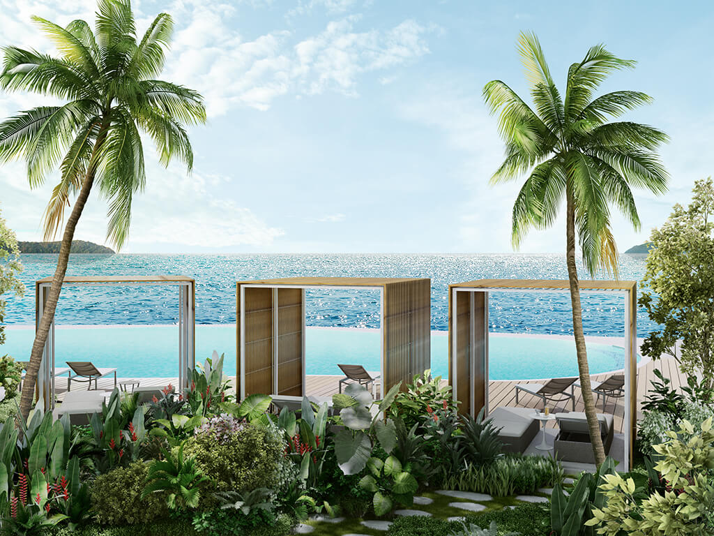 珍南海濱為大型综合開發項目,包含海景服務式套房和零售商店(A棟)、面海Villa(B棟)、五星級豪華酒店(C棟)。目前在售單位為A棟,約有70%為海景房,可盡情享受遼闊海景,以及酒店式服務和度假村主題設施。
