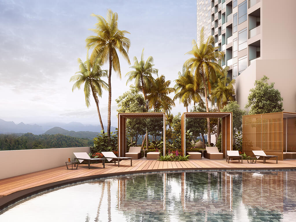 項目坐落於珍南海灘(Pantai Cenang),是蘭卡威最成熟也最爲熱鬧的遊客聚集地,背靠熱鬧商業街,面朝蔚藍大海,距離蘭卡威國際機場僅10分鐘車程,是理想的度假場所。